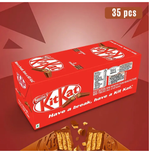 • Indulge in the irresistible crunch of KitKat 2-Finger Chocolate, now available in a convenient 119gm box with 35 individually wrapped pieces. Made from rich, creamy milk chocolate and the signature crispy wafer layers, KitKat offers the perfect balance of texture and flavor in every bite.