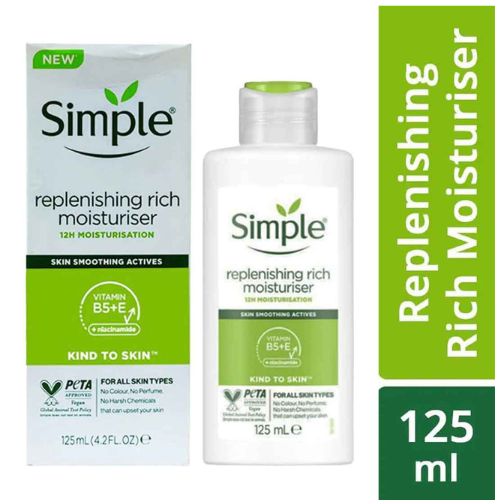 - Our Simple Replenishing Rich Moisturiser is a vitamin-rich, replenishing moisturiser to help smooth and soften skin.